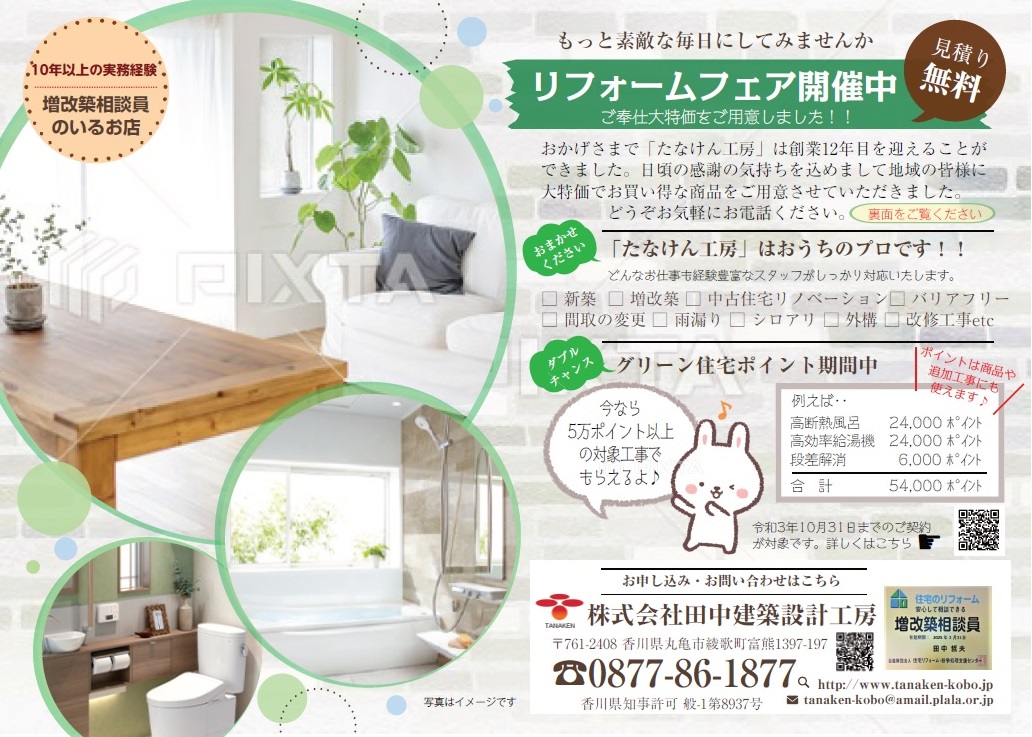 リフォームフェア開催中です!お見積り無料。どうぞお気軽にお問い合わせ下さい。